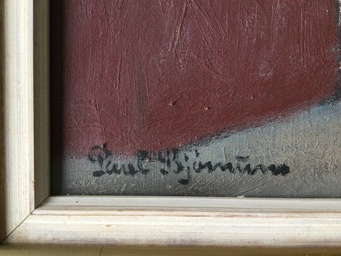 Paul Bjørnum (20 årh): Landskab med huse. Olie på lærred. Sign.: Paul Bjørnum Tidligere på Bruun Rasmussens Auktioner. 40x50 (59x69)