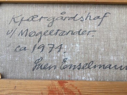 Sven Enselmann (1926-2004): 4 længet Marksgård "Kærgårdshof" syd for Møgeltønder 1974. Olie på lærred Sign.: Sven Enselmann (Bagpå lærred) Bagpå betegnet - Kjærgårdshof ved Møgeltønder. 30x60 (33x63)