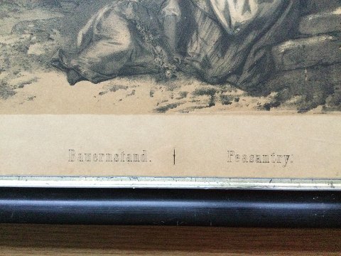 Gustav Bratsch (19 årh): Mor og børn på trappen ved bondegård. Litografi på papir. Betegnet - Bauernstand - Peasantry. Indrammet i smuk samtidig lak/sølv ramme. 33x41 (36x48)