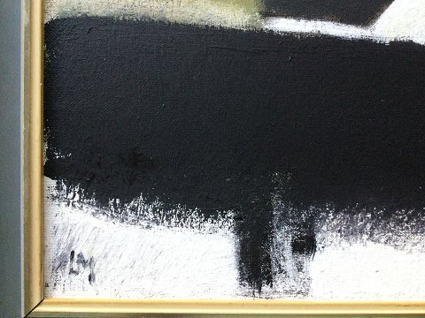 Leon Møller (1919-92): Huse i landskab. Olie på lærred. Sign.: LM. Bagpå - Leon Møller 08793 31x41 (39x49)