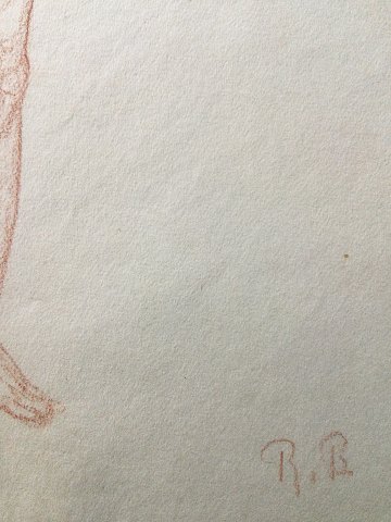 Robert Büchtger (1862-1951): Gående mand med lændeklæde og stav. Rødkridt på papir. Sign.: R.B. Uden ramme. Bladet måler 22x16½ 32322