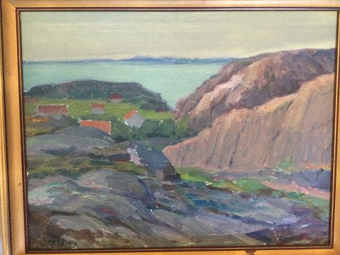 Hermod Bidstrup (1885-1973): Kystparti 1947. Olie på lærred Sign.: H.B. 47. 40x52 (45x57) 5123