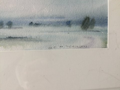 Ole M. Terjesen (1952-93): Landskab. Akvarel på papir. Sign.: Ole M. Terjesen 11x16 (22x31)