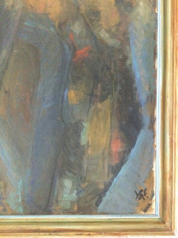 Hjalmar Lystager (1917-87): Gruppe af mennesker. Olie på lærred. Sign.: HL (monogram) bagpå blindramme rester af udstillingsmærkat. 101x68 (111x78) 17323