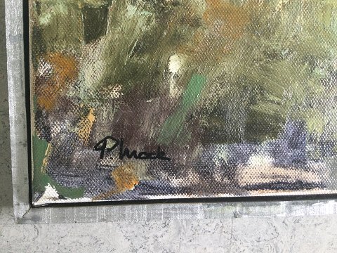 Peter Mock (født 1943): Vestjysk landskab. Olie på lærred. Sign.: P. Mock 50x50 (52x52)