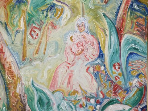 Hans Jørgen Korn (1888-1963): "Madonna" Olie på lærred. Sign.: Korn. Betegnet - Madonna 65x65 (72x72)