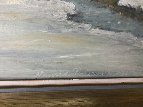 Ninna Fruensgaard (1901-2003): Vinterparti fra Vestkysten 1967. Olie på plade. Sign.: Ninna Fruensgaard 67. Et par næsten utydelige pletter. 40x60 (50x70)