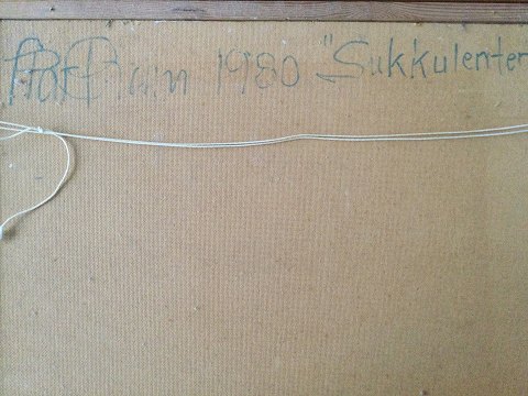 Karl Gram (født 1945): Vindueskarm med sukkulenter 1980 Olie på plade. Sign.: Karl Gram Bagpå plade - Karl Gram 1980 "Sukkulenter" 50x71 (65x86) 22209