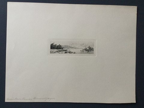 Louise Ravn-Hansen (1849-1909): Himmelbjerg Søen Radering på papir. Sign.: Louise Ravn-Hansen (i trykket). Uden ramme. Bladet måler 26x34- pladen måler 4½ x 12 25323