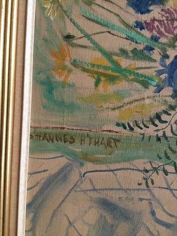 Johannes t' Hart (født 1933): Markblomster i vase. Olie på lærred. Sign.: Johannes t' Hart 68x56 (86x74) 3508