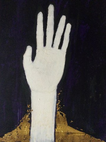 Michael Lind Brandt (1984-2005): Komposition med hånd. Akryl og bladguld på lærred. Sign.: MLB (monogram) bagpå lærred. Uden ramme. 80x50 25704