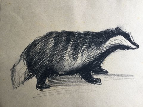 Torkil Norél (1922-2009): Grævling. Kul/bly på papir. Sign.: usigneret Uden ramme 27x37 5924