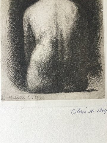 Cilius Andersen (1865-1913): Modelstudie 1904. Radering på papir. Sign.: Cilius A 1904 (bly samt i trykket) Uden ramme Plademål (11½ x 15½) - Bladet måler 45x33 13224