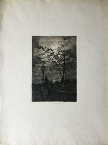 Thorvald Niss (1842-1905): Nattevandrer. Radering på papir. Usigneret Uden ramme Plademål 20x14½ - Arkets mål 43x32½ 13224