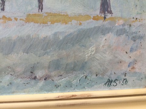 Mette Schou (1909-90): Vinterlandskab 1950. Pastel på papir. Sign.: MS - 50. 27x35 (32x40) 20624