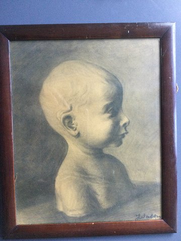Ukendt kunstner (19/20 årh): Barnebuste på bord. Tegning på papir. Antagelig en akademitegning. Sign.: Utydeligt signeret Indrammet i mahogni ramme. 33x27 (38x31) 21624