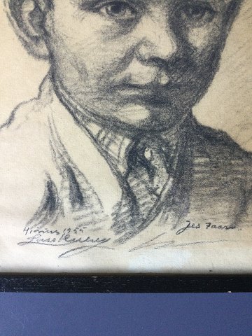 Lars Nielsen (1893-1965): Portræt af Drengen Jes 7 år - 1955. Betegnet Hjørring 1955 - Jes 7 år. Bly på papir. Sign.: Lars Nielsen 31x23 (33x25) 21624