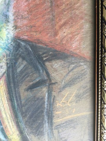 Ubekendt Kunstner (20 årh): Portræt fra 1951 af Kunstmaleren Hans Jørgen Korn (1888-1963). Pastel på papir. Sign.: K.K. - 51. 40x35 (47x42) 21324