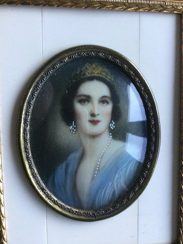 Portræt af fornem dame med diadem, perlekæde og ørenlokker.
