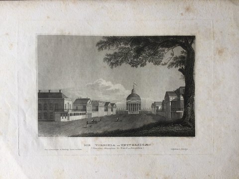 Johann Poppel (1807-82): Universitetet i Virginia, USA ca. 1850. Stålstik på papir. Sign.: J. Poppel Betegnet - "Die Virginia-Universitæt" plettet Uden ramme 20x28½ 10623