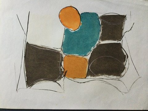 Litografier med efterbehandling af akvarel og farvekridt på papir.