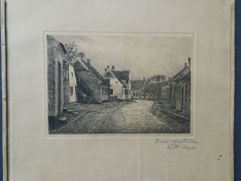 Emil Westman (1894-1935): Gadeparti, 1922. Radering på papir. Sign.: Emil Westman 1922. Eget tryk Uden ramme. 29x35