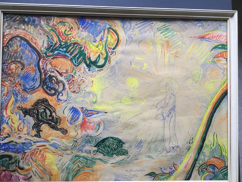 Hans Jørgen Korn (1888-1963): Kristus den Uovervindelige. Akvarel på papir. Sign.: Korn Betegnet - Den Uovervindelige 54x74 (58x79) En meget smuk og veludført komposition. 11225