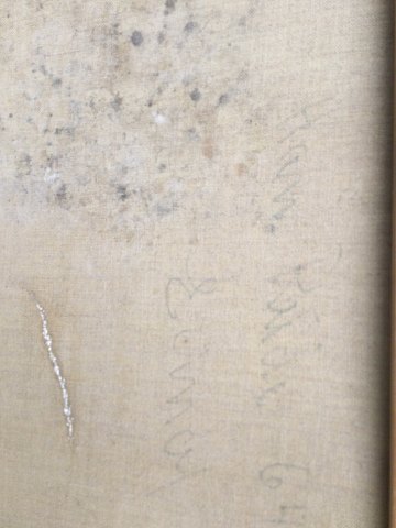 Sign.: Bagpå lærred - E. Moe 64 samt utydelig betegnelse.