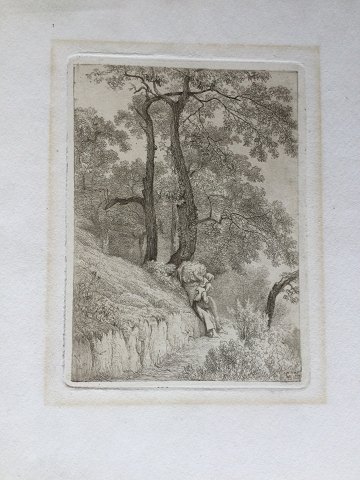 Louis Gurlitt (1812-97): 2 kvinder med fyldte kurve i kuperet terræn 1857. Radering på papir. Sign.: Gl 1857 (monogram) i trykket Uden ramme. Plademål 14x10 - Arkets mål 22½ x 18½ 15725