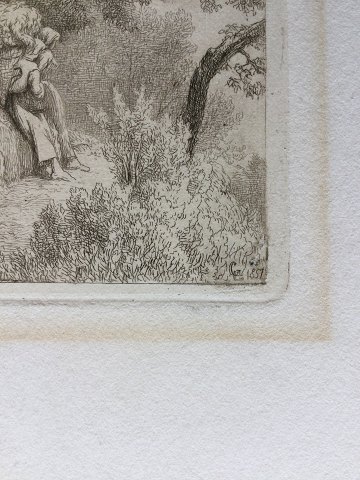 Louis Gurlitt (1812-97): 2 kvinder med fyldte kurve i kuperet terræn 1857. Radering på papir. Sign.: Gl 1857 (monogram) i trykket Uden ramme. Plademål 14x10 - Arkets mål 22½ x 18½ 15725