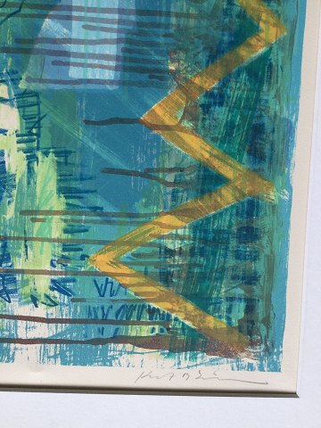 Kurt Børge Simonsen (født 1955): Komposition Farvelitografi på papir monteret i passepartout. Sign.: Kurt B. Simonsen Nr.: 212/220 Uden ramme Lito mål 72x51 - Passepartout mål 87x67 20825