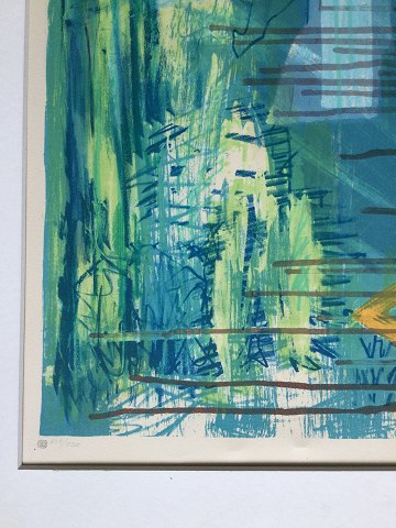Kurt Børge Simonsen (født 1955): Komposition Farvelitografi på papir monteret i passepartout. Sign.: Kurt B. Simonsen Nr.: 212/220 Uden ramme Lito mål 72x51 - Passepartout mål 87x67 20825