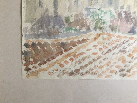 Ellen Krause Rørup (1905-90): Parti fra Sparta 1962. Akvarel på papir. Sign.: Ellen Krause Betegnet - Sparta 6-2-62. Smuk guldramme 28x39 (43x52)
