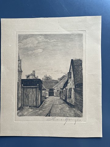 C. Holmqvist (20 årh): Parti fra landsby. Sign.: CH (i trykket) og i bly Constantin C. Holmqvist (??) Uden ramme Pladen 22x17½ - Arket 29x25 2722