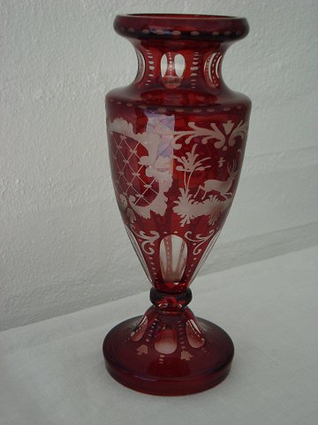 Böhmiske slebne krystal/glas vaser med rødt overfang.