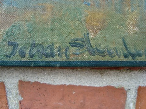 Johan Stender (20 årh): "Efterårsskov" Sign.: Johan Stender olie på lærred uden ramme. 31x31