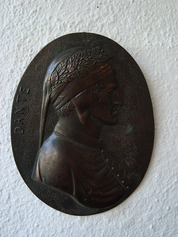 Oval patineret bronzeplakette med Dante. Mål: 11½x9