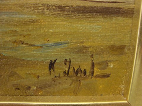 Kim Juul (født 1954): "Fiskekutter på stranden" Olie på lærred. Sign.: K. Juul. 24x30 (28x34)
