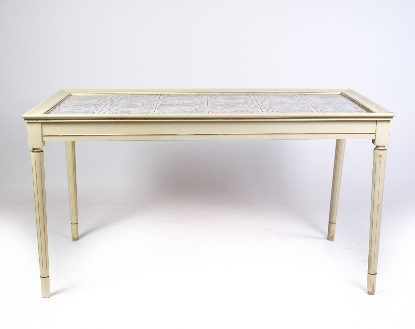 White painted tile table from around the year 1940s. Stands with fine paint in good condition.
