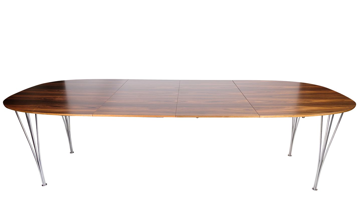 Dining table, designed by Piet Hein & Bruno Mathsson with rosewood veneer and steel legs produced by Fritz Hansen. The table is from the 1960s and is in incredibly nice condition.