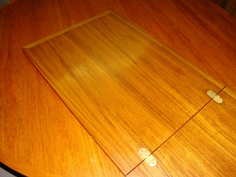 SolgtSpisebord i teaktræ med to udtræksplader tegnet af Børge Mogensen . Ø 140 cm i super kvalitet