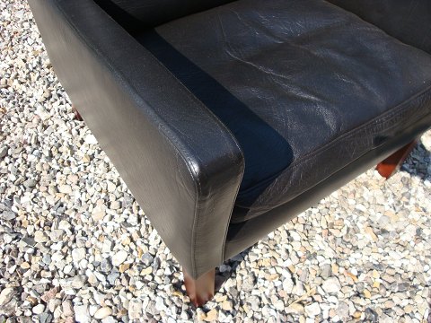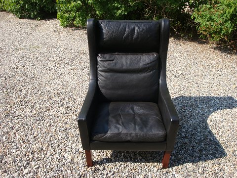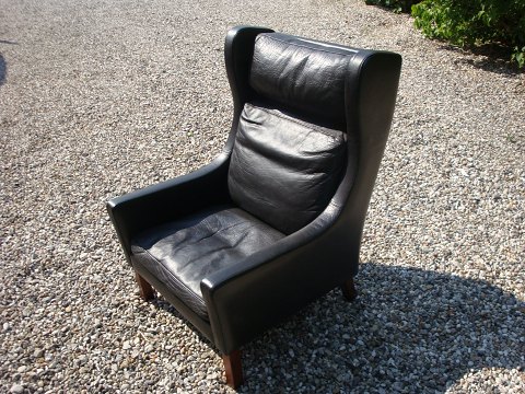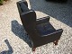 SolgtHvilestol /øreklapstol i sort skind Dansk design fra 1960´erne står som ny