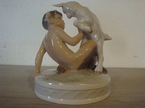 Royal Danish porcelain figurine. Faun with a goat. No 1012/948. In perfect condition.