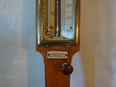 SolgtBarometer i Egetræ fra slutningen af 1800 tallet. Måler 94cm og er 8cm bredt.