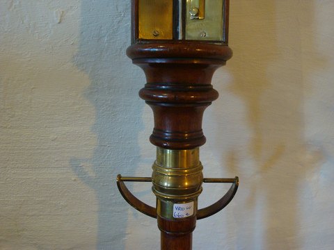 SolgtBarometer i mørkt træ med fine detaljer. 94cm højt og 8cm bredt.