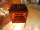The table had a water damage on top of the flap and the flaps. We have restored the table and inlaid new marquetry. See foto before and after.