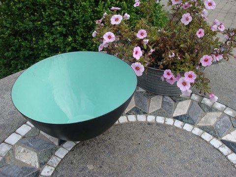 SoldLarge krenit bowl with green emalje. It measures 25cm in diameter. The bowl is in good condition.