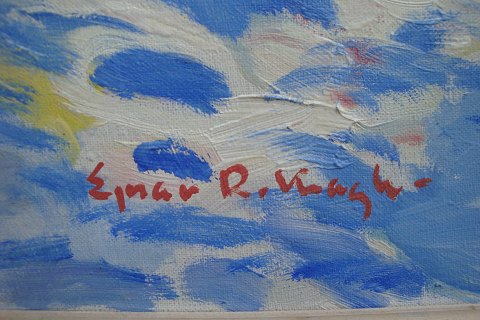 SolgtMaleri af Ejnar R. kragh med motiv af badebørn Højde 80 cm * Bredde 68 cm