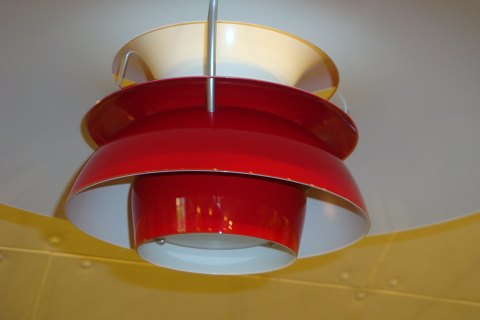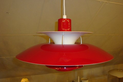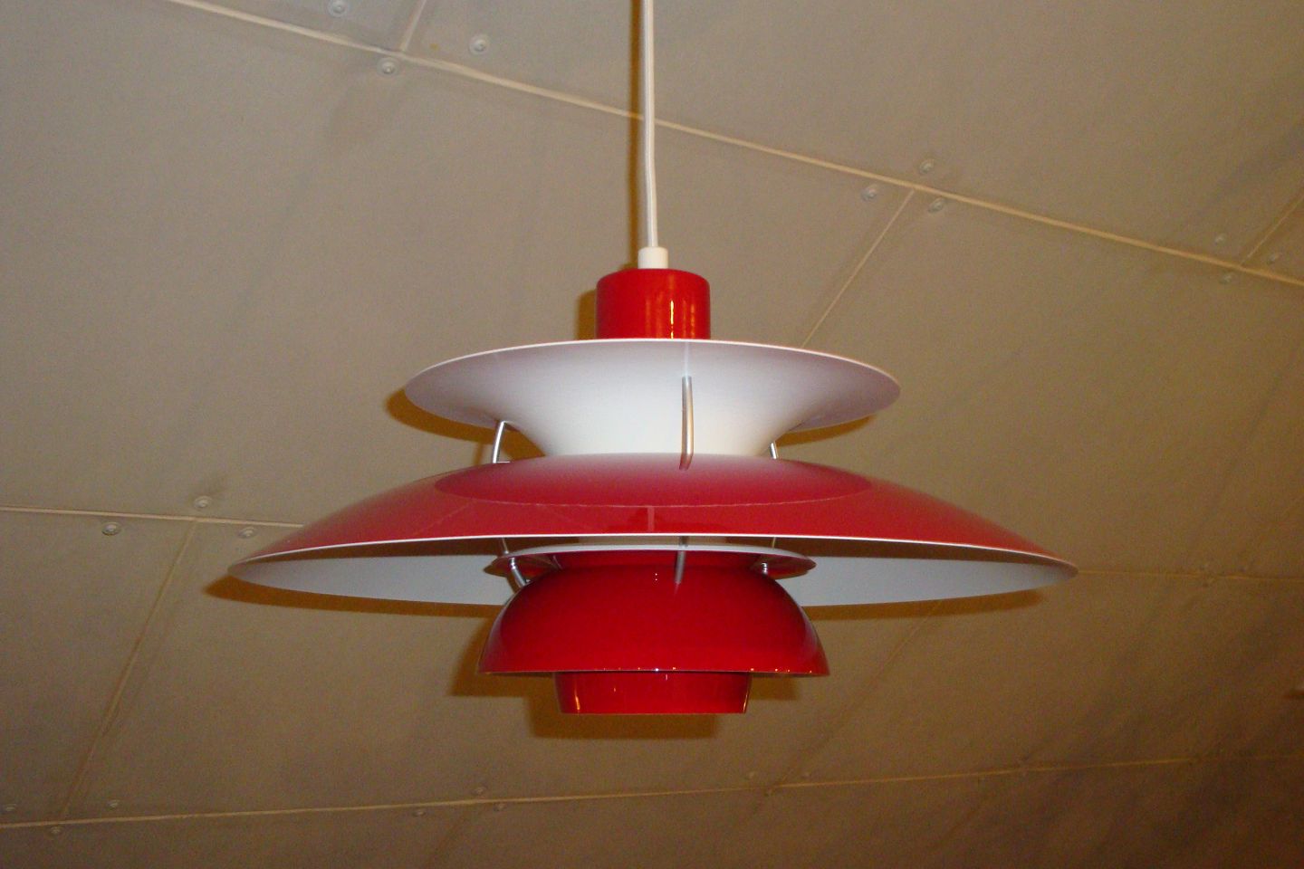 SoldPoul Henningsen PH5 ceiling lamp in fine red high polish. The lamp is in very good condition and is an exhibition model, for sale with certificate.