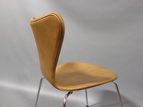 Sold6 chairs By Arne Jacobsen re-upholstered with leahter in cognac. Model 3107